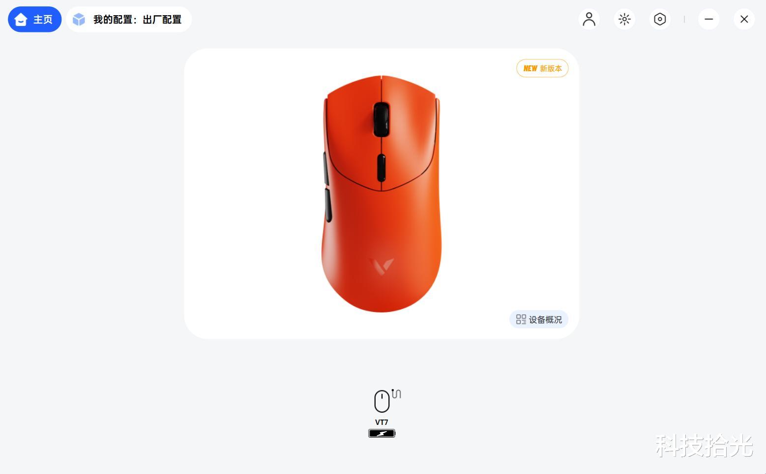 接下来就是重头戏——雷柏VT7二代鼠标的驱动安装感受。有线模式连接鼠标后,可以看到鼠标本体,点击图片即可进入详细设置。