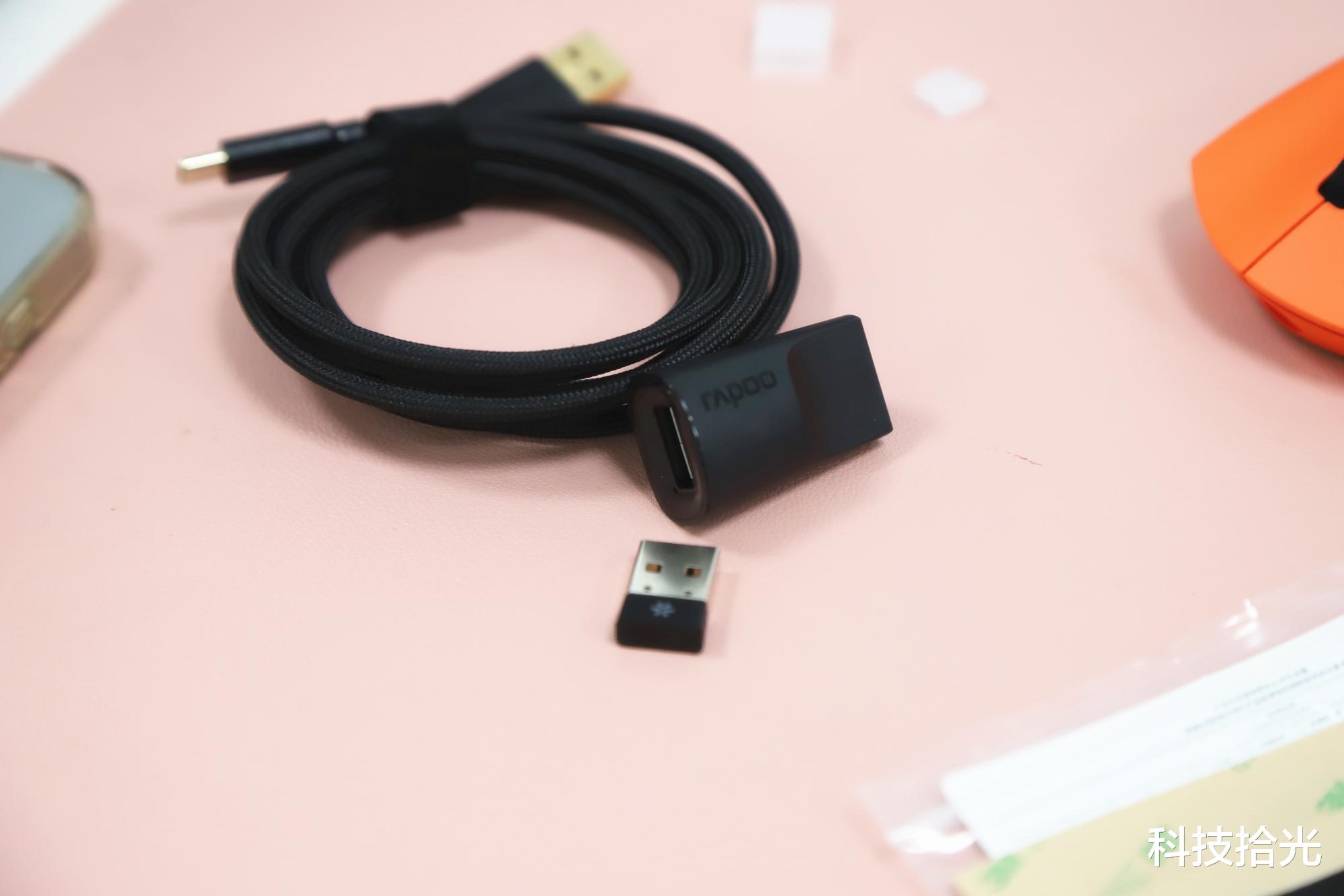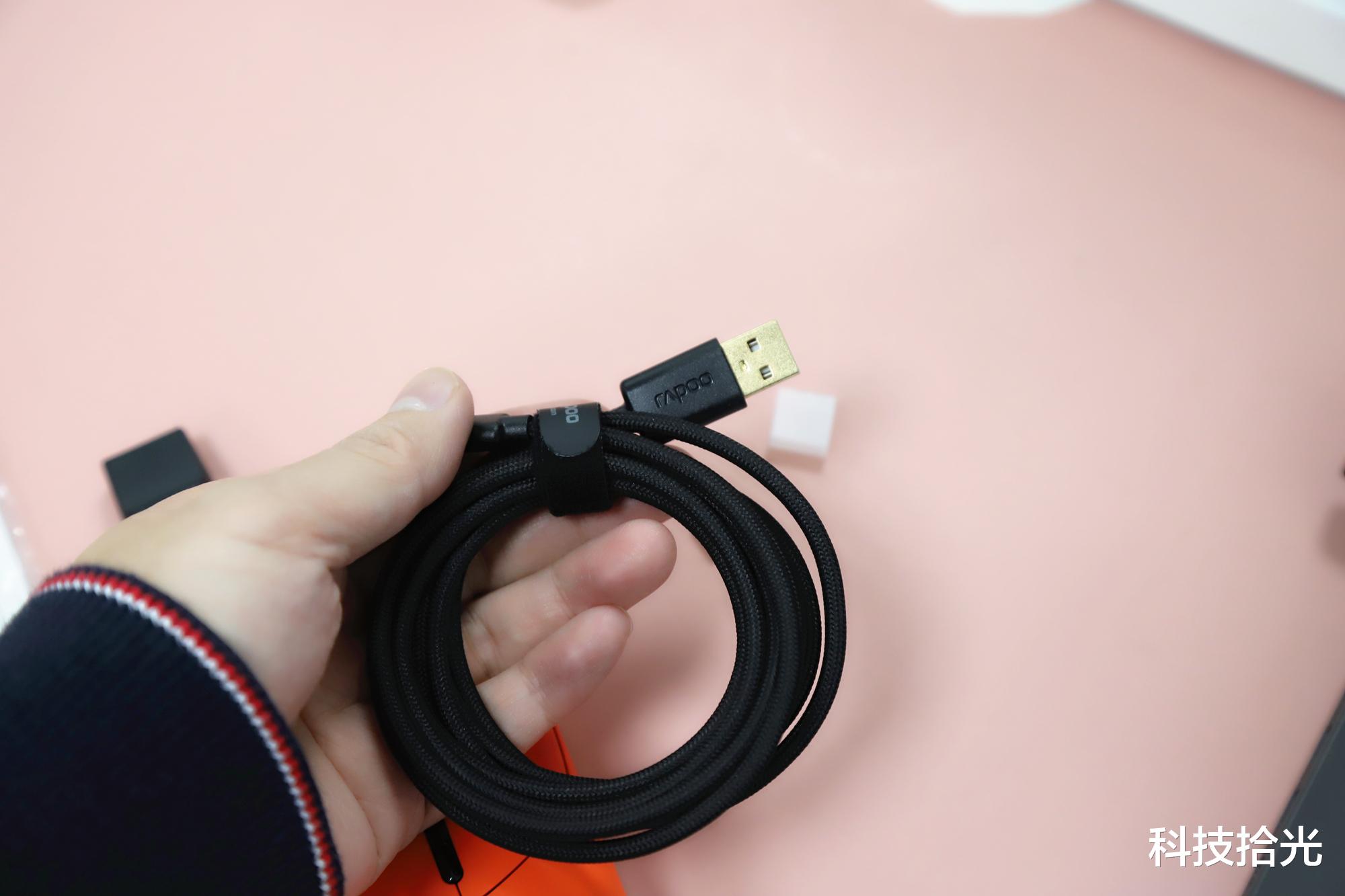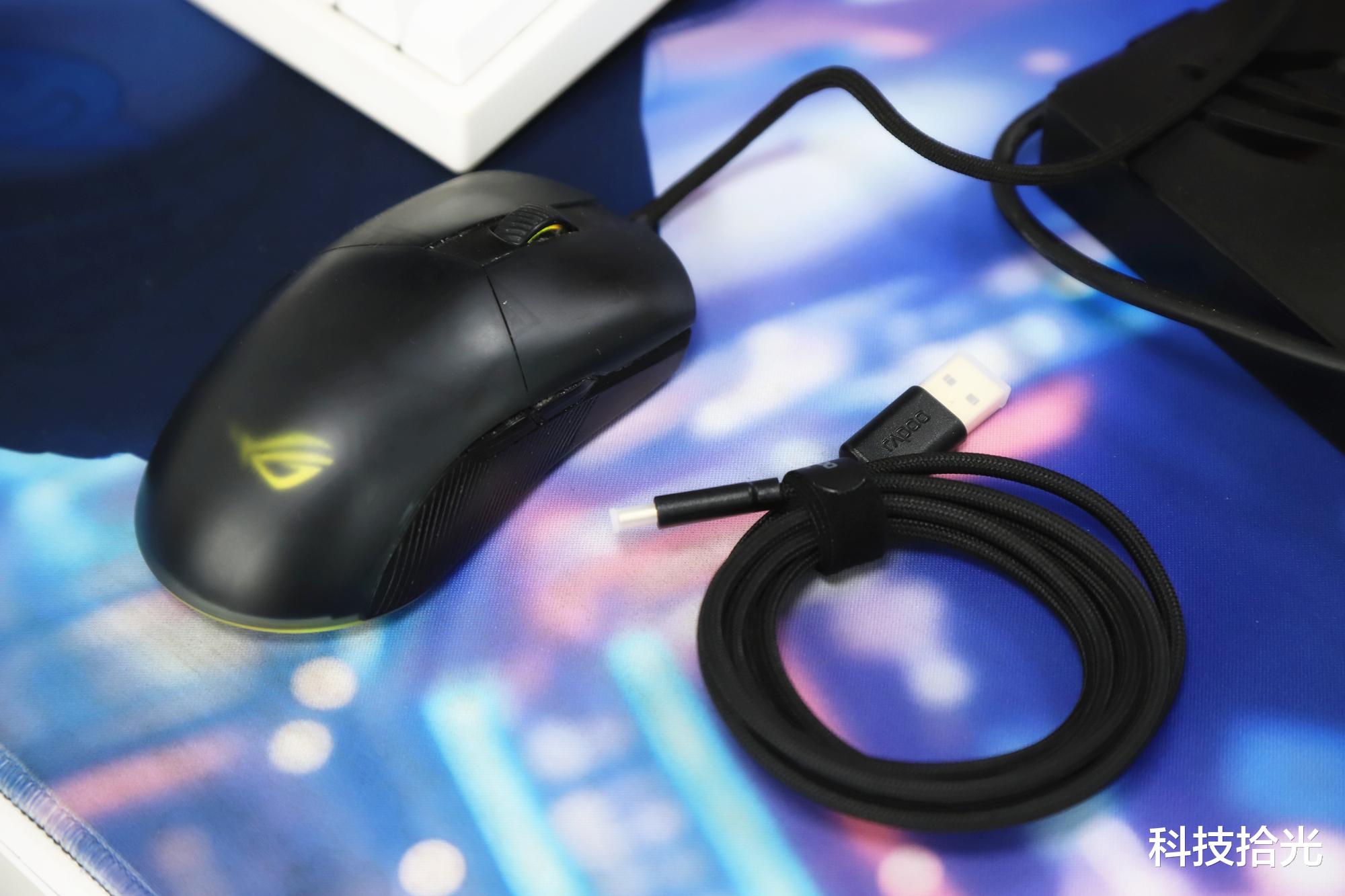 另外一个就是1.8米的带屏蔽层编织线,相比于市面上大多鼠标赠送的线缆都要好用,此前富余的一根雷柏线缆我给自己的老ROG鼠标用上了,比老款ROG赠送的原装线还好用,并且支持数据传输,可以搭配硬盘使用也很稳(亲测推荐!)。