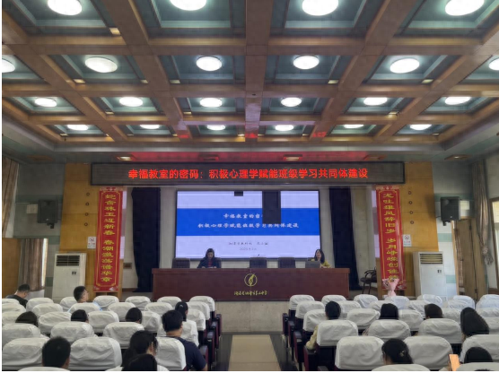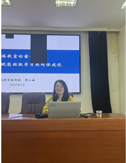 为进一步提高我校心理健康教育的质量,加强班主任队伍建设,提高班主任的管理能力,促进我校师生身心健康,5月12日,我校开展了本学期第五期德育论坛活动,本次活动特邀湘潭市教科院心理研究员周小滋老师为全体班主任开展了以《幸福教室的密码:积极心理学赋能班级学习共同体建设》为主题的讲座,活动由副校长施俊主持、政教处全体成员、年级组长及全体班主任参会。