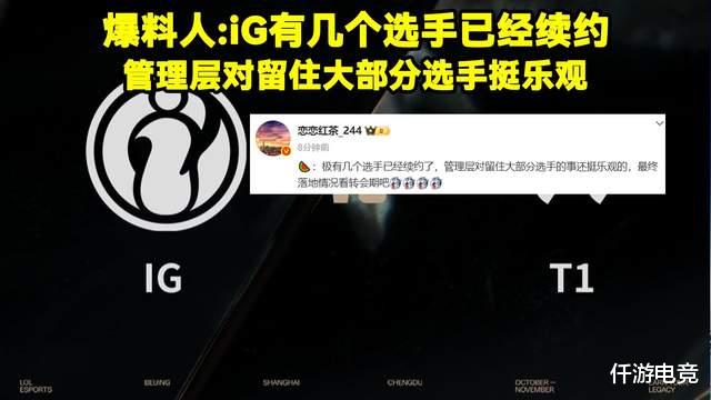 关于这个问题,LPL知名爆料人“恋恋红茶”在网上透露说:“IG有几个选手已经续约了,管理层对留住大部分选手的事还挺乐观的,最终落地情况看转会期吧。”