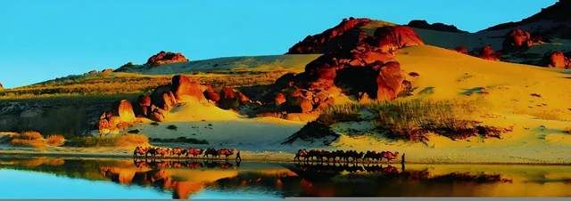 玉龙沙湖:沙漠与湖泊的完美结合你敢信吗? 在赤峰,沙漠和湖泊竟然能和谐共存!玉龙沙湖就是这样一个神奇的地方。金色的沙丘连绵起伏,而沙丘之间却藏着碧蓝的湖泊。