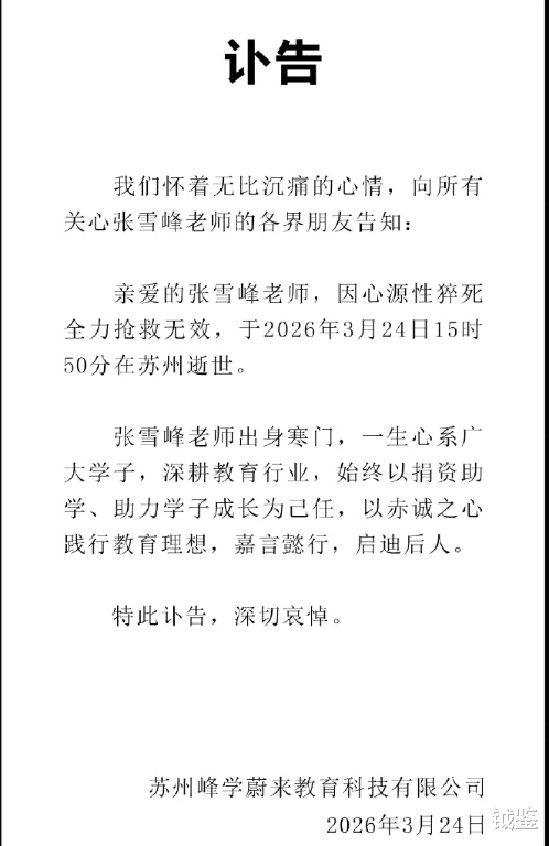 看着张雪峰个人账号发出的讣告,每个喜欢他或者知道他的人都很伤心遗憾。一个这么有才华,且一直致力于造福引导更多寒门学子的老师就这样突然离世了。