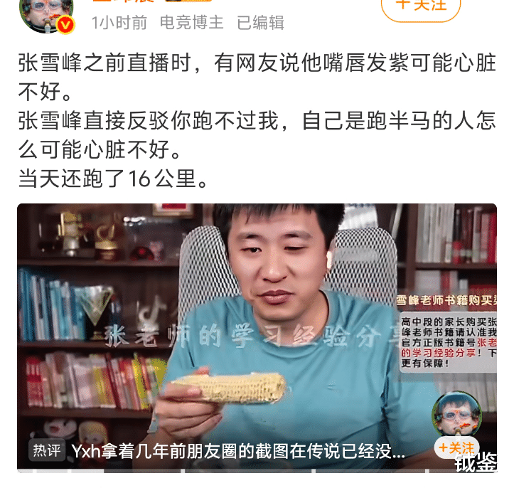其实张雪峰之前直播的时候,就有网友提醒他嘴唇发紫,要小心身体。但当时张雪峰精神状态很好,他自己也没觉得哪里不舒服,还跟网友调侃对方跑不过他,他刚跑了16公里。