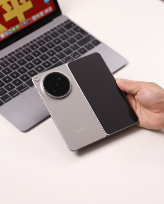 我手上这台是原钛色,后盖是那种很细的磨砂感,摸着很润,也不沾指纹。手感上,它折叠起来跟我之前用的直板手机一加12厚度差不多,单手握持毫无压力。展开的时候倒是需要点力气,铰链初段阻尼挺强,但它牛就牛在从0度到120度左右都能稳稳悬停,超过这个角度就“啪”地一下自动弹平了。我特意看了下铰链缝隙,各个角度都严丝合缝,做工确实可以。