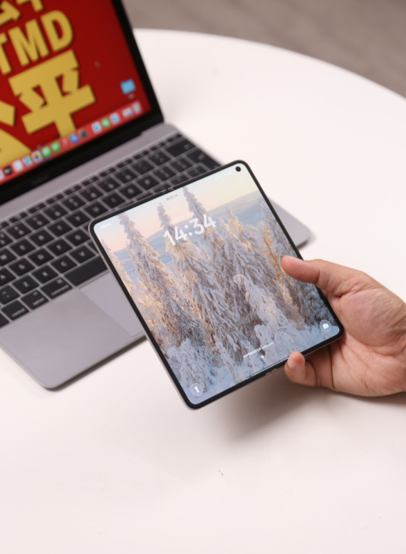 不夸张地讲,我翻来覆去对着光看了半天,正面几乎没找着。只有把手机侧过来,借着反光才能隐约瞅见一道印子。这感觉怎么说呢,就像你明知道它在那儿但它就是不打扰你。有几次我拿手里想折起来,手指在大屏上摸了半天没找准折叠的方向,因为它中间那块触感太平整了,完全搞不清哪边是头哪边是尾。这种“无痕”体验,真的得亲自摸一把才能体会到那种爽感。