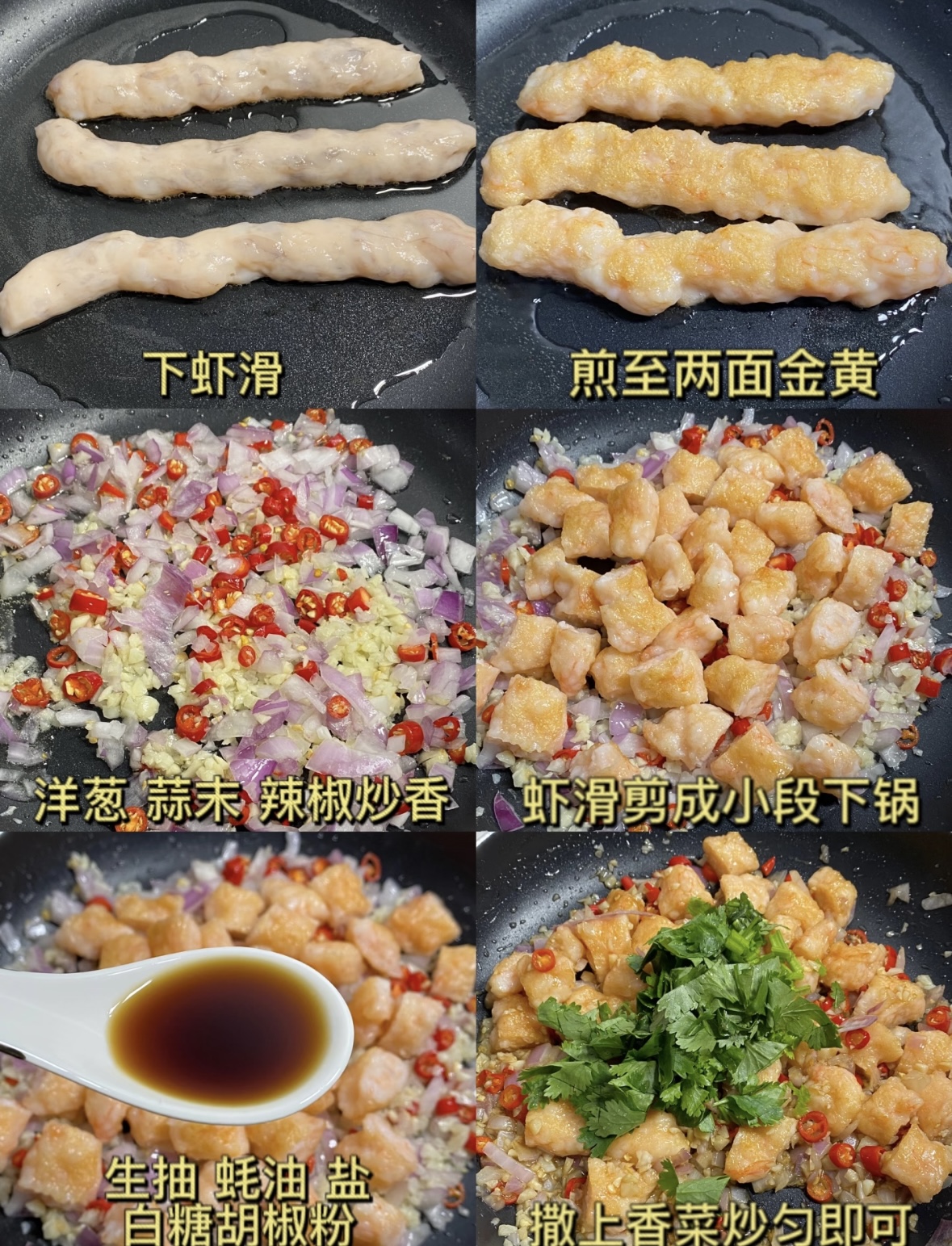 调味是灵魂高光时刻:半勺蚝油、半勺生抽、一小撮白糖、半勺老抽上色,最后来一丢丢胡椒粉,沿着锅边淋入,“呲啦”一声白雾腾起,香味像火箭升空。快速翻炒,酱汁均匀裹住每一颗虾滑,颜色从粉嫩变成油亮红棕,像给它们穿上了麻辣小皮衣。关火前撒一把香菜,铲子一翻,青翠的香菜被热气一激,香气瞬间从“川味”切换到“滇味”,多了一层清新的尾韵。