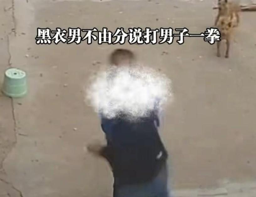 双方仅仅交谈了数句,就看到黑衣男子突然扬手朝他打去,速度快到根本来不及反应,就那么一下,这位父亲就被打倒在地,此后黑衣男子离去。