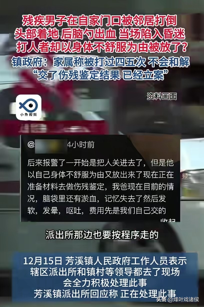 残疾父亲被打12月15日,一位江西网友发布了一段父亲被打的视频,并配文:父亲脑出血住院,医院已下了病危通知书。