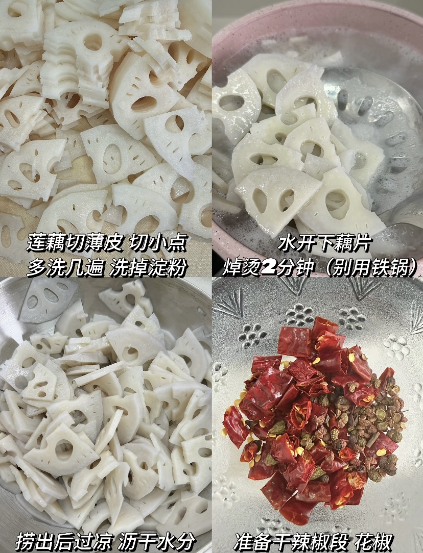 接下来是焯水,这是藕片脆爽的关键步骤。锅中烧开水,水开后放入藕片,焯烫2分钟即可。这里要注意,焯水时间不能过长,否则藕片会变软,失去脆感;也不要用铁锅,铁锅容易让藕片发生氧化反应,导致颜色发黑。焯好水的藕片要立即捞出,放入凉水中过凉,这样能迅速降温,锁住脆度,还能让藕片更爽口。过凉后,将藕片沥干水分,准备下一步的炝拌。