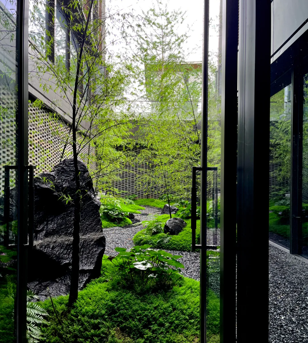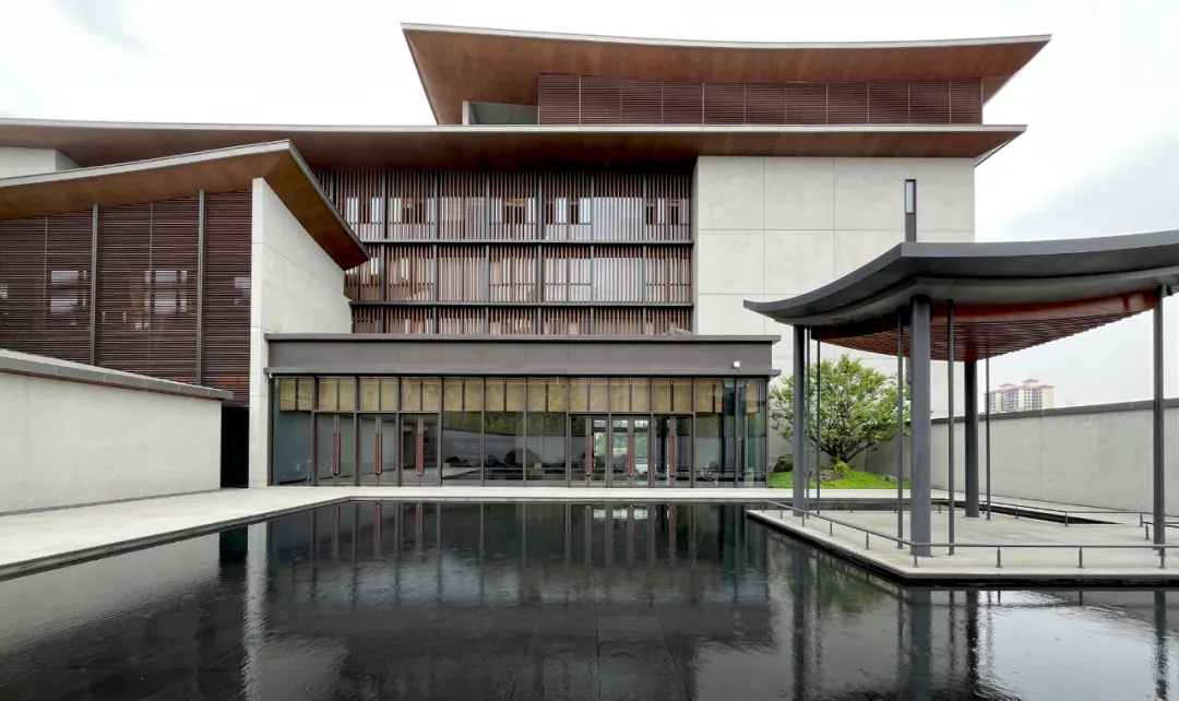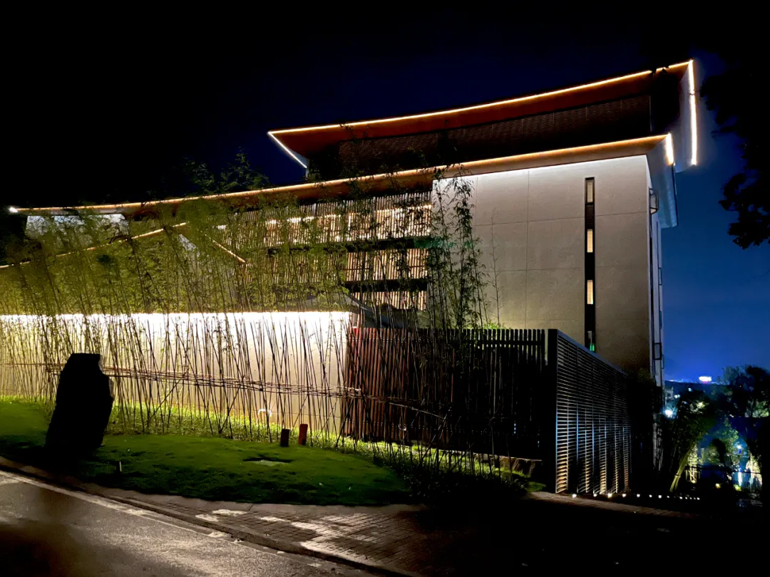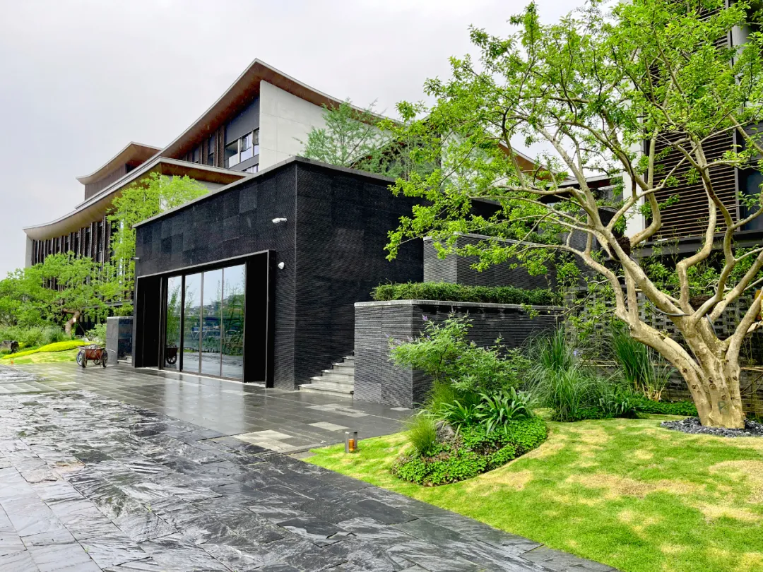 设计取意“湘南水乡”风骨,将传统民居的雕花窗棂、水磨青砖等元素解构重塑,既存古韵又赋新形;格栅式漏窗巧借绿影婆娑,框住四时风光。