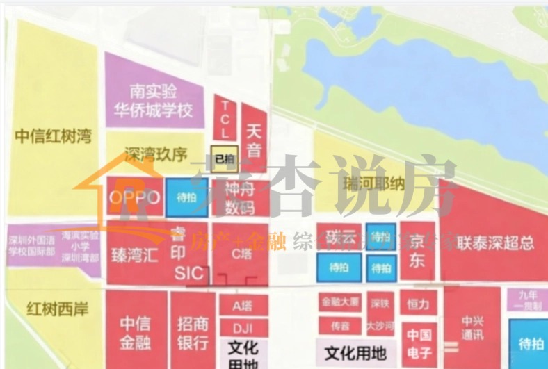 在深超总板块,除了已经入市的深湾玖序和年底由中海地产以77360元/平米楼面价夺下的地块外,仍有5块商业空地待字闺中。