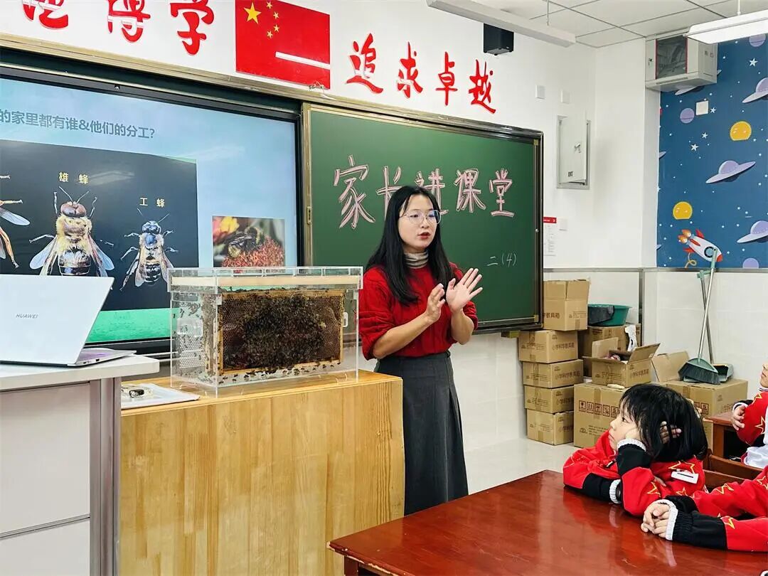 这次别开生面的家长课堂,学校荣幸地邀请到了张家睿同学妈妈及“农大寻蜜人生国家级创业团队”成员,他们化身“自然导师”,带领孩子们走进神奇的昆虫世界,探索蜜蜂的奥秘。本次活动不仅介绍了蜜蜂的知识,还安排了蜜蜂形成过程的观察、真实蜜蜂的观察以及蜂蜜的品尝环节,让孩子们在互动中学习,在体验中成长。