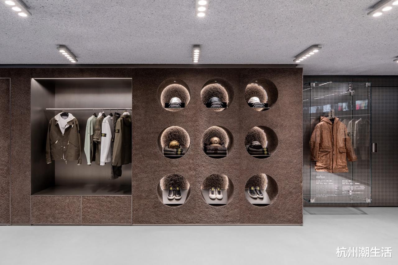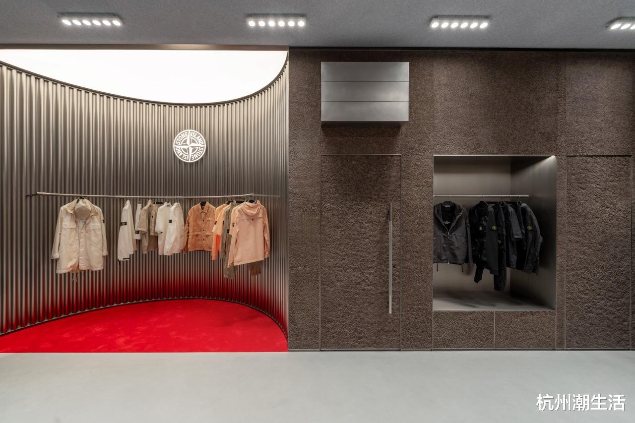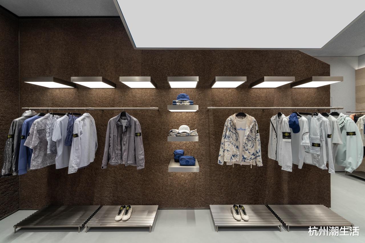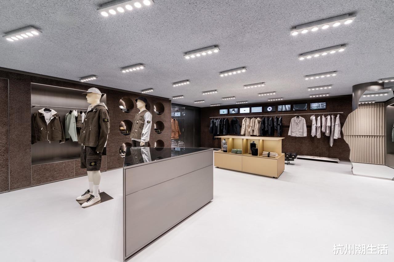 与其他旗舰店一样,杭州旗舰店融合了独特的合作设计元素,包括Tim Hooijmans为品牌专门设计的横跨天花板的灯光系统、Johan Viladric特别打造的极简风电镀铝展示台、Markus Toll设计的 SUPERBENCH 长凳,以及用于展示 Stone Island 典藏系列的单品玻璃陈列柜,由Phil Procter为品牌特别定制。