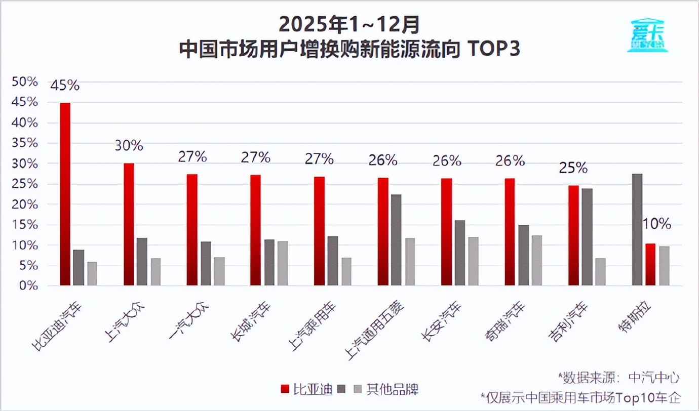 因为这份报告的说明中提到,榜单中几乎所有车企用户在置换新能源车型时,均将比亚迪列为首选品牌。
