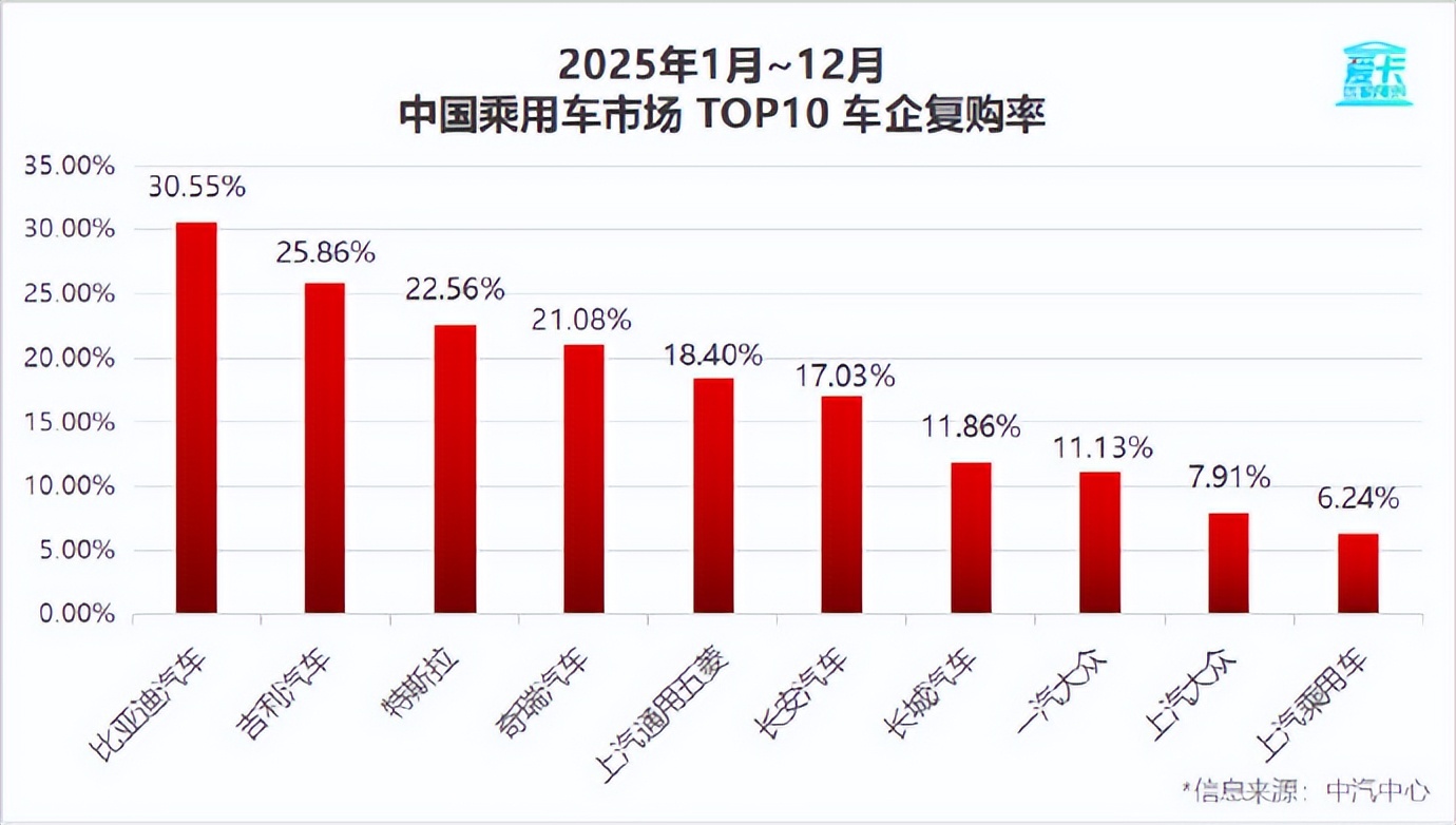 爱卡研究院发布了《2025年车企复购率榜单》,这个榜单的数据还挺有意思的。