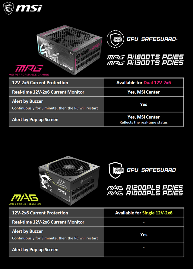 而采用GPU Safeguard标准版的电源则支持单12V-2X6接口保护并提供蜂鸣警报。