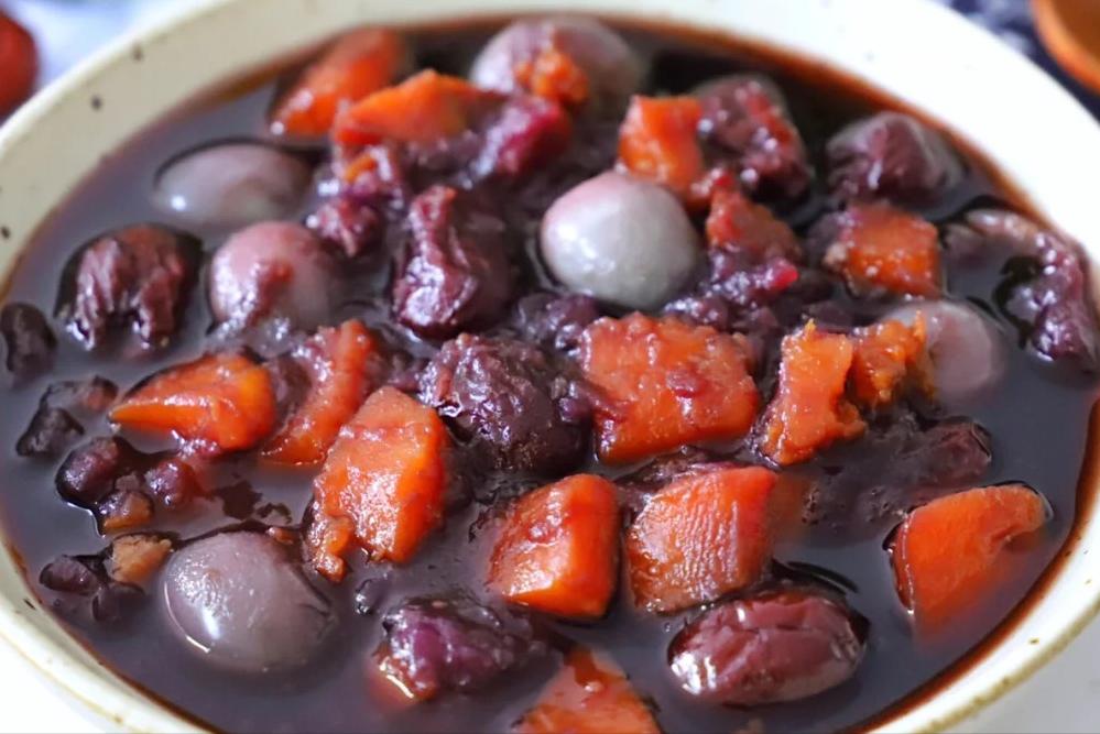 等红糖完全融化,这道双薯红枣汤就大功告成啦!喝上一口,暖到心里,家人们赶紧试试吧!
