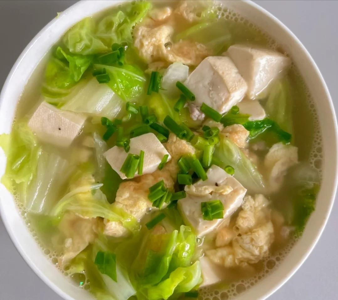 这汤喝起来那叫一个鲜美,白菜清甜,豆腐嫩滑,鸡蛋香软,营养又好喝,家人们都可以试试哟!