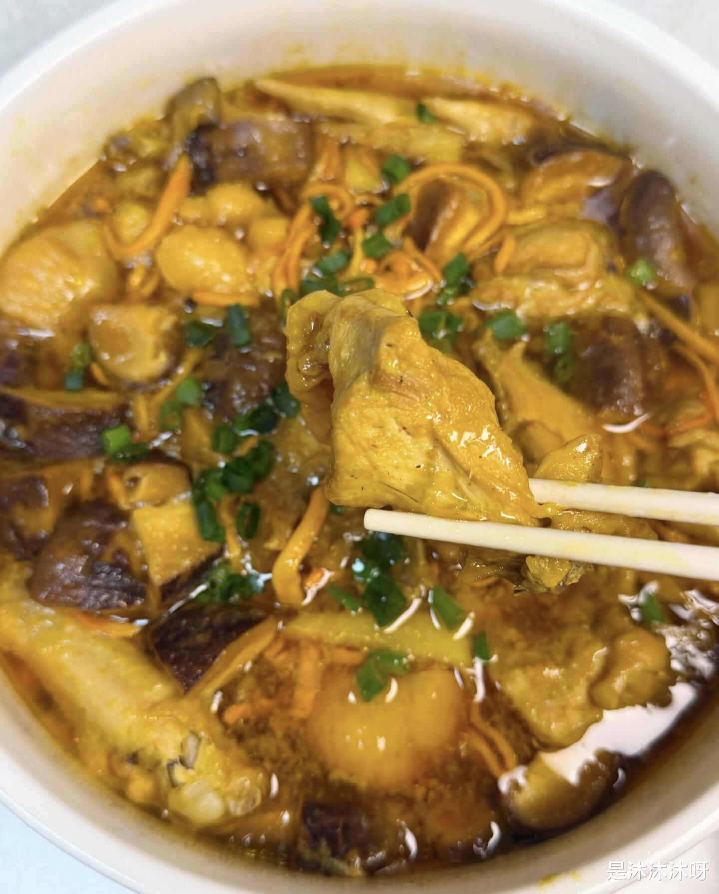 夹一块鸡肉送进嘴里,先是感受到酱汁的咸鲜,紧接着是鸡肉本身的嫩滑,轻轻一抿就在舌尖化开,完全没有柴硬的感觉。底下的香菇吸足了鸡汁,咬一口满嘴留香。