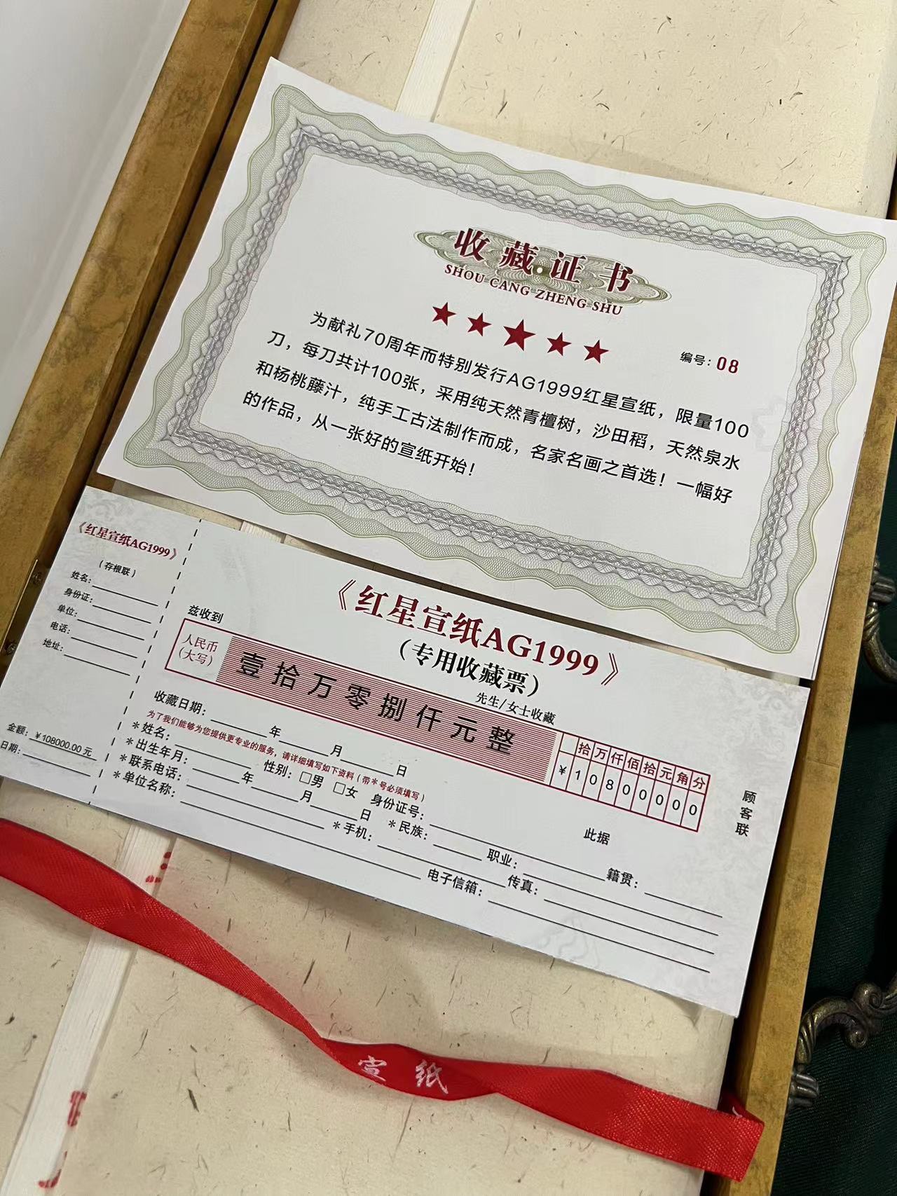 安徽红星AG1999宣纸是安徽红星宣纸进出口有限公司规格最高的宣纸。也是公司为了献礼70周年的时候设立的极品宣纸,规格包括有龙纹宣、生宣、熟宣、半熟宣。