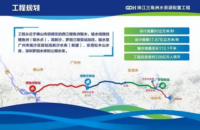 珠三角水资源配置工程是国务院部署的172项节水供水重大水利工程之一,也是《粤港澳大湾区发展规划纲要》确定的水利基础设施项目。工程输水线路总长113.1千米,总投资约354亿元,是广东已建成投资规模最大、输水线路最长、受水区域最广的水资源配置工程,充分体现了国家对解决珠三角地区水资源问题的重视和决心。