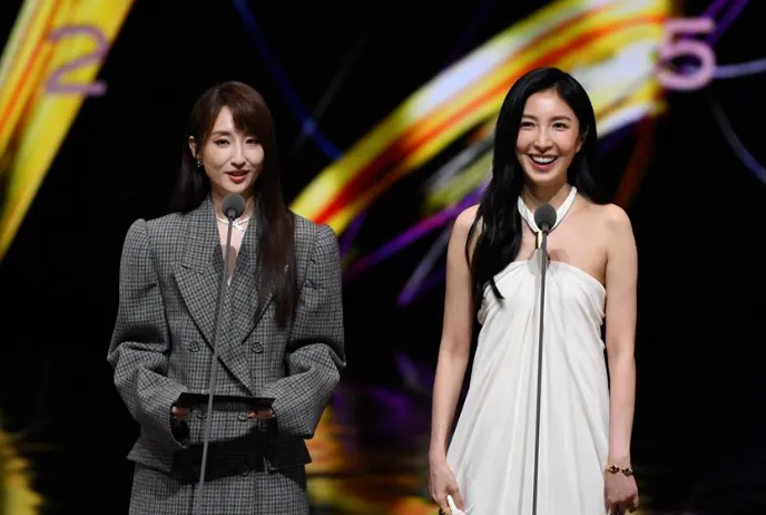杨谨华与柯佳嬿——两位被媒体贴上“宿敌”标签的女演员,并肩登台担任颁奖嘉宾。