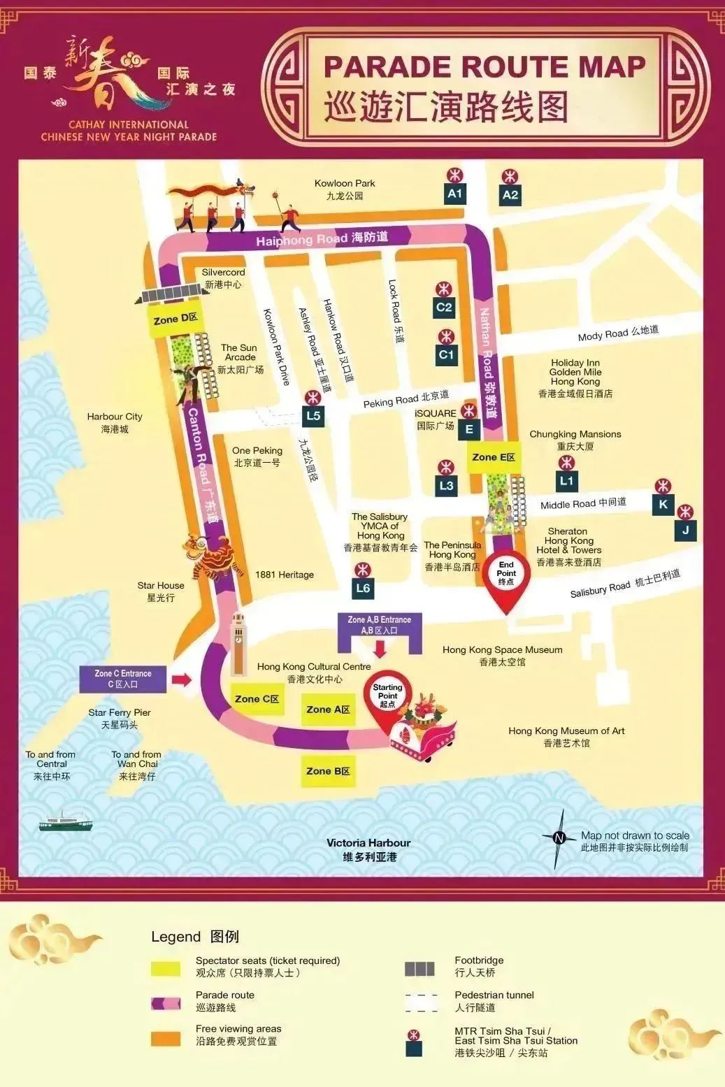 活动举行前约 2 - 3 小时将会实施封路措施,大家尽量提前安排时间前往观赏点,并听从现场指引。