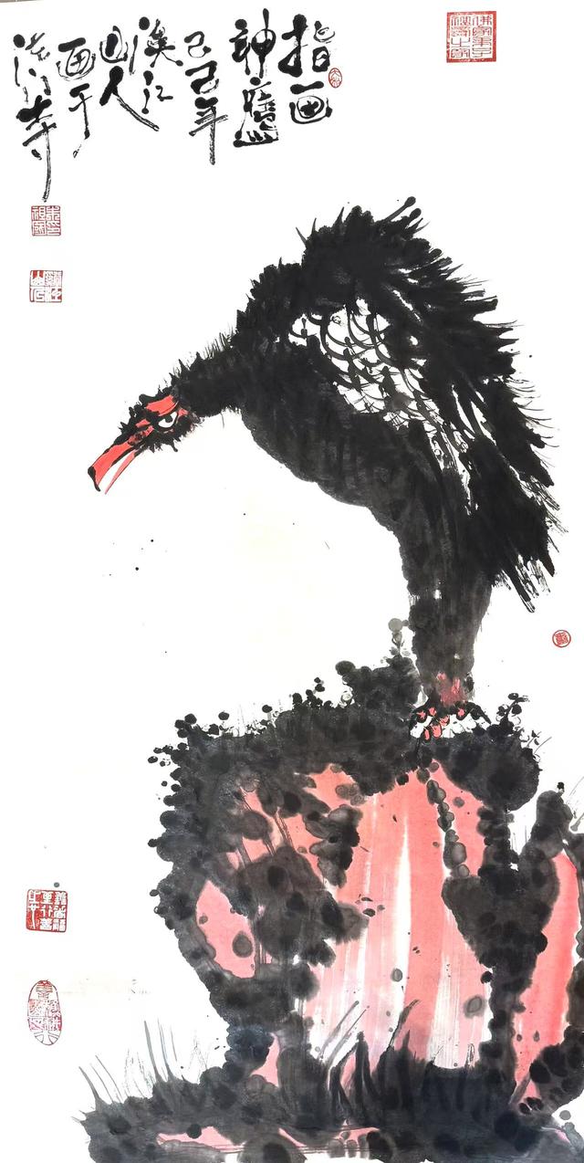 溪江画派创始人、中国指墨画领军人朱祖国先生国画鹰