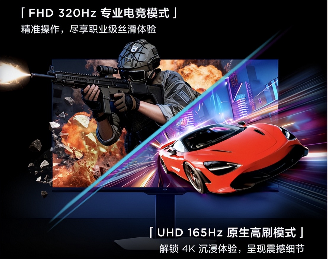 作为专门为3A玩家打造的显示器,C3A Pro不光画质能打,电竞性能更是配置拉满,硬核玩家直接狂喜,完全能满足高强度对局需求!它采用UHD 4K 165Hz与FHD 320Hz双模面板,还支持一键切换,不管是快速走位、极限甩枪,还是高速竞速,画面都全程丝滑无卡顿,没有一点拖沓感,丝滑到起飞!