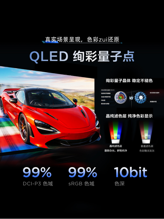 当然了,玩3A大作离不开精准的色彩,平时看电影、追剧也一样,色彩拉胯的话,体验直接减半!而TCL C3A Pro搭载了QLED绚彩量子点技术,DCI-P3和sRGB色域覆盖率都达到了99%,能精准呈现超过10亿种色彩,还原度拉满。平时用它打3A、看4K电影,视觉体验更是越级提升,画质足以封神!