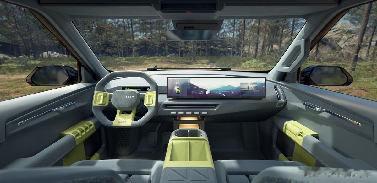 外观上,EV5 Weekender(探享者)针对车灯、保险杠、侧护板等细节进行了特别设计,通过立体感和几何化表达,与原车形成强烈的视觉反差,进一步强化整车的力量感;外饰主色调采用桦木色,内饰主色调为云杉蓝,并融入柑橘绿作为点缀色,打造出具有情绪感染力的色调,让座舱成为连接城市与自然的过渡空间。