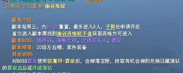 每周三、周六的副本更是不得不刷,在“日钻本”中,对BOSS霖泉使用驱魔符-霖泉后,就有机会掉落宝匣,并有机会开出霖泉血晶或月威溟钻,直接交易变现。而在“世界套”副本中,则会直接掉落各职业各部位的世界套装,不同部位在寄售行的价格不同,从几百金到上万金都有,利润十分可观。