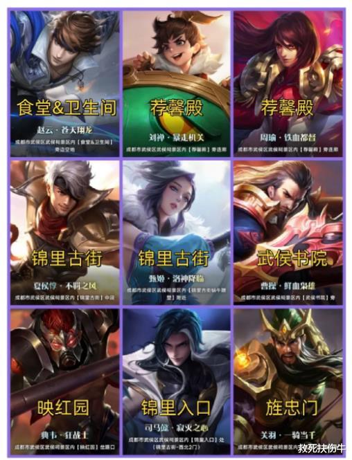 吐槽的点在于,很多魏国英雄都被安排在武侯祠了,里面魏国的英雄比蜀国都要多,周瑜和司马懿这两都在......不存在塞不下的问题,但是赵云打卡点却在卫生间边上,就很怪异。