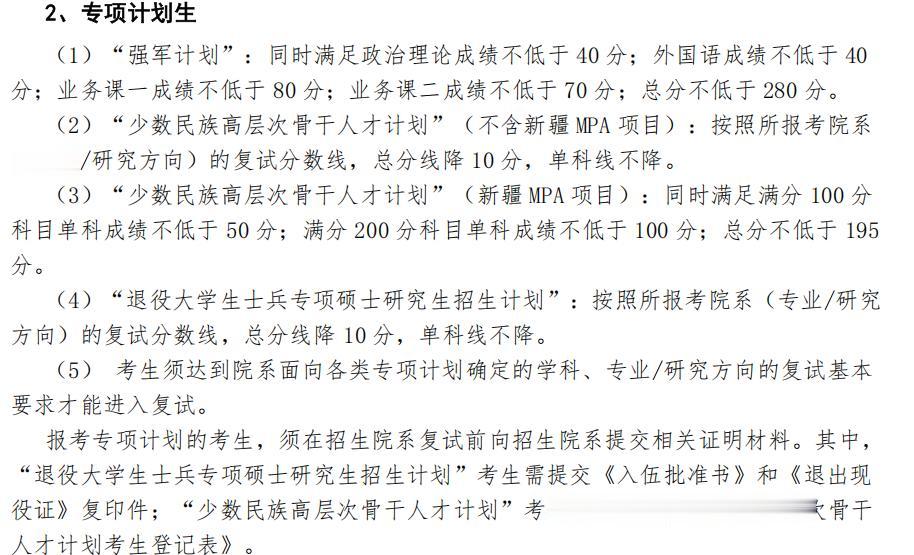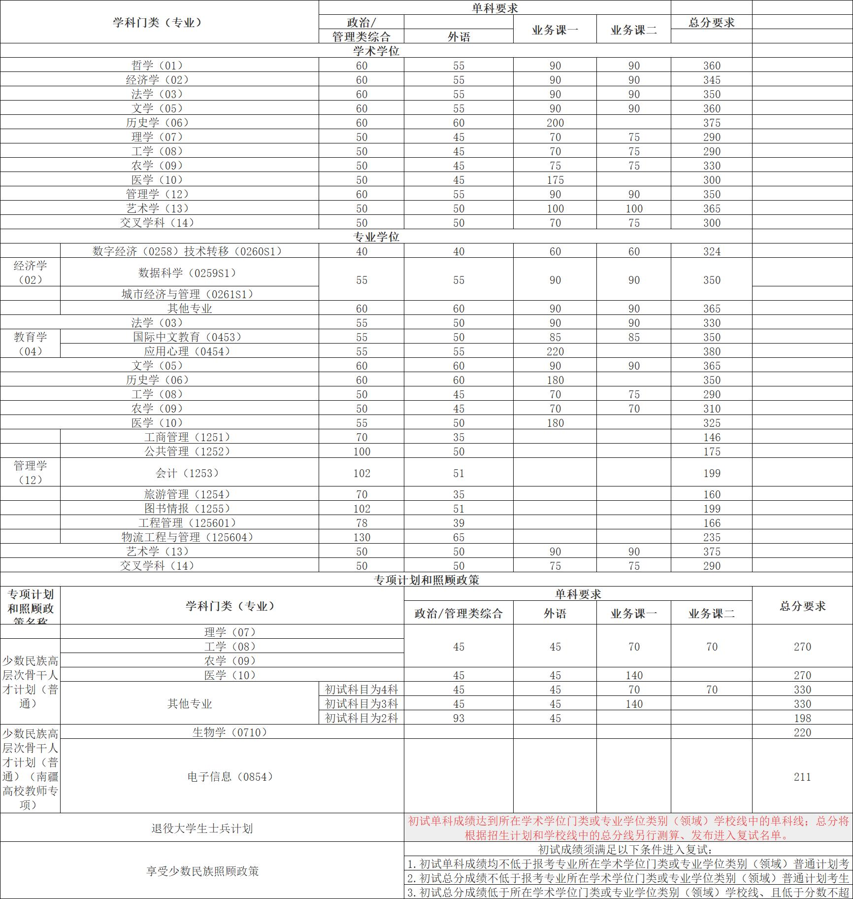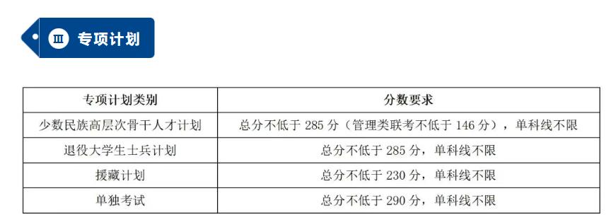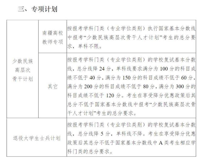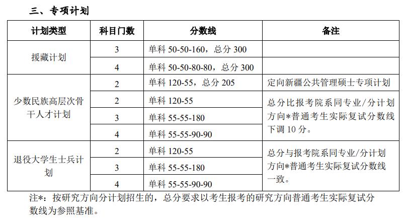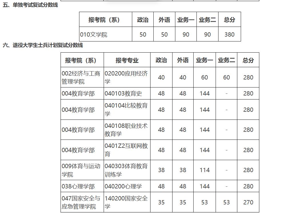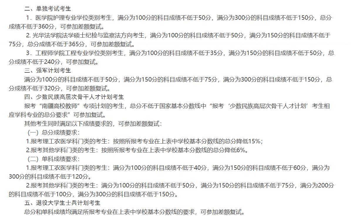 5、单独考试复试分数线、退役大学生士兵计划复试分数线