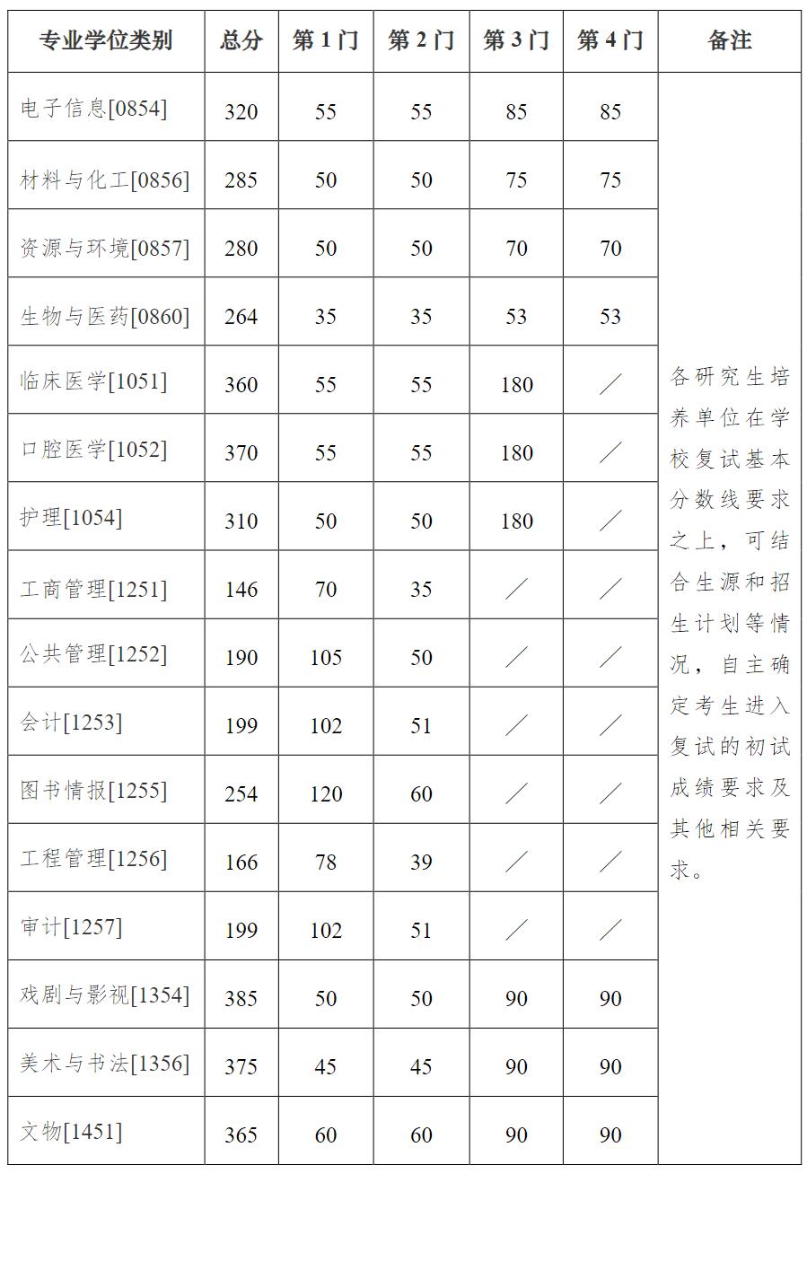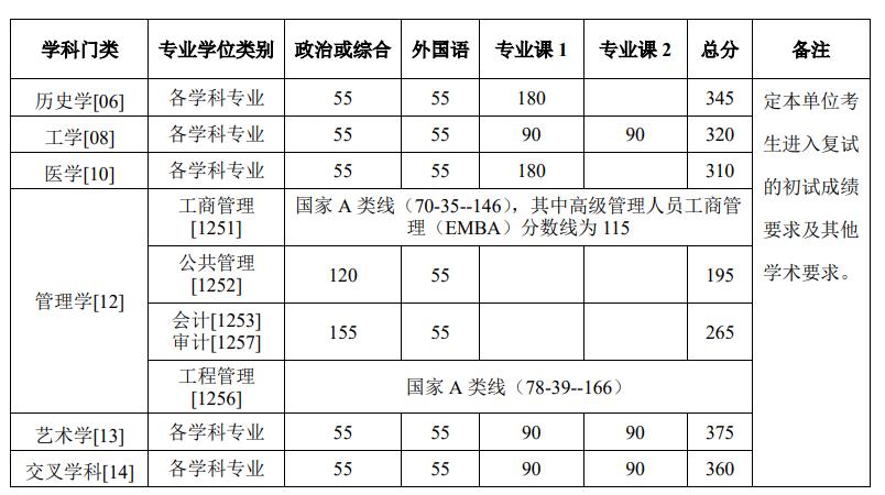 西安交通大学2026年硕士研究生招生复试基本分数线
