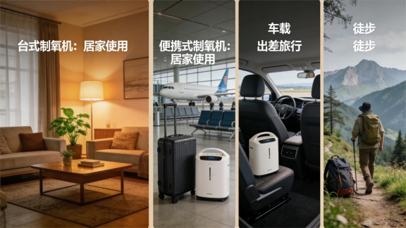 目前市面上制氧机主要分为两类——台式制氧机和便携制氧机,两者适用场景差异明显,家用吸氧机也都有这两类机型,商旅出行只选便携款才能避免闲置、不踩坑。