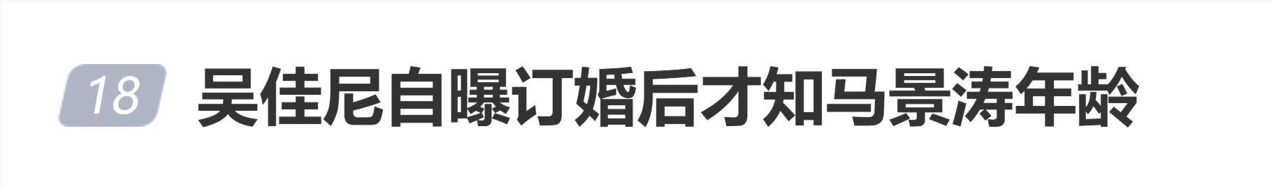 据吴佳尼回忆,当时年仅23岁的她,仅凭外貌就误判马景涛“30多岁”,从未主动询问过年龄这个“基本信息”。直到父亲得知两人交往后强烈反对,质问她“你知道他多大了吗?”她才在订婚后鼓足勇气去问马景涛。而马景涛的反问“你不知道我年龄吗?”和随后“44岁”的答案,让她当场愣住,内心“咯噔一下”。