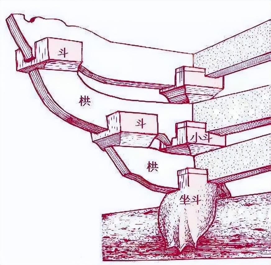 唐宋木构建筑的斗拱结构作用明显,布置舒朗,木材用料大,朝代更迭至明清时,斗拱装饰作用明显,排列密集,木材用料小,但是仍未丧失承托出檐的作用。
