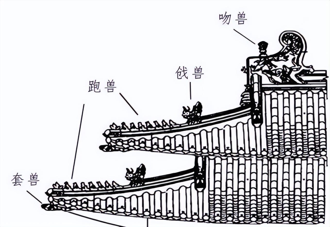 古建筑屋脊上装饰的兽件,多为琉璃制;每座建筑屋脊上装饰的兽件形象、数量不尽相同,在起到装饰作用的同时,也代表着不同的等级。据相关学者研究,在唐及唐代之前,中国古建筑屋脊上可能没有脊兽。