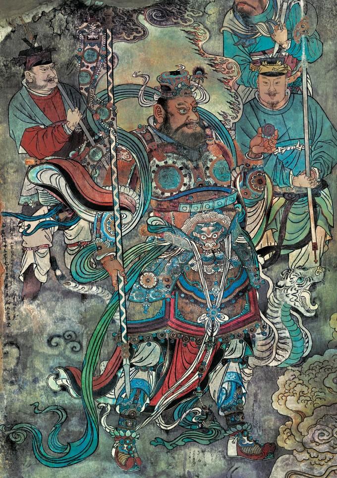 壁画佛教寺院壁画,可以简单的看做是将佛龛上的佛像,通过画作的形式搬到了墙上,同时施展以更丰富的场景,更多的人物形象,展现佛经中用以教化百姓的故事;道教宫观壁画,也几乎同理。