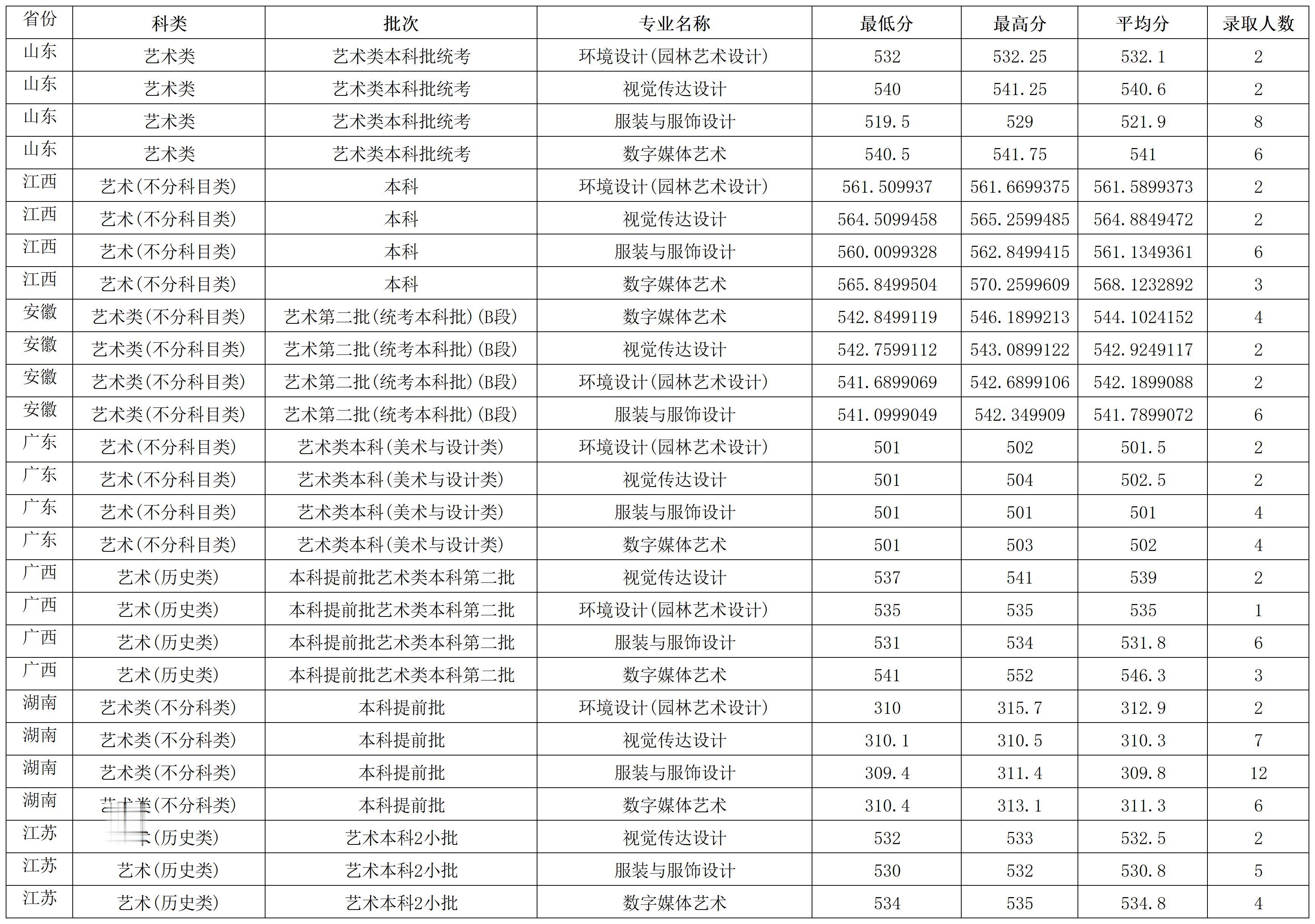 浙江农林大学2025年艺术类在各省各专业录取分数线