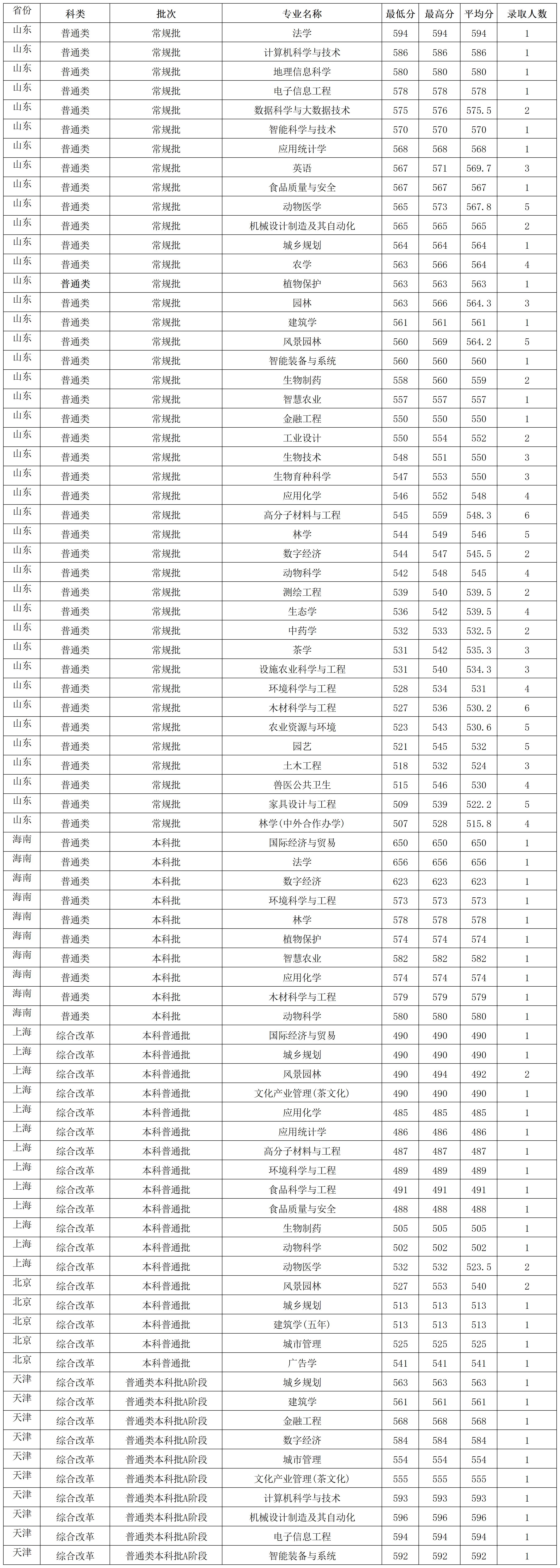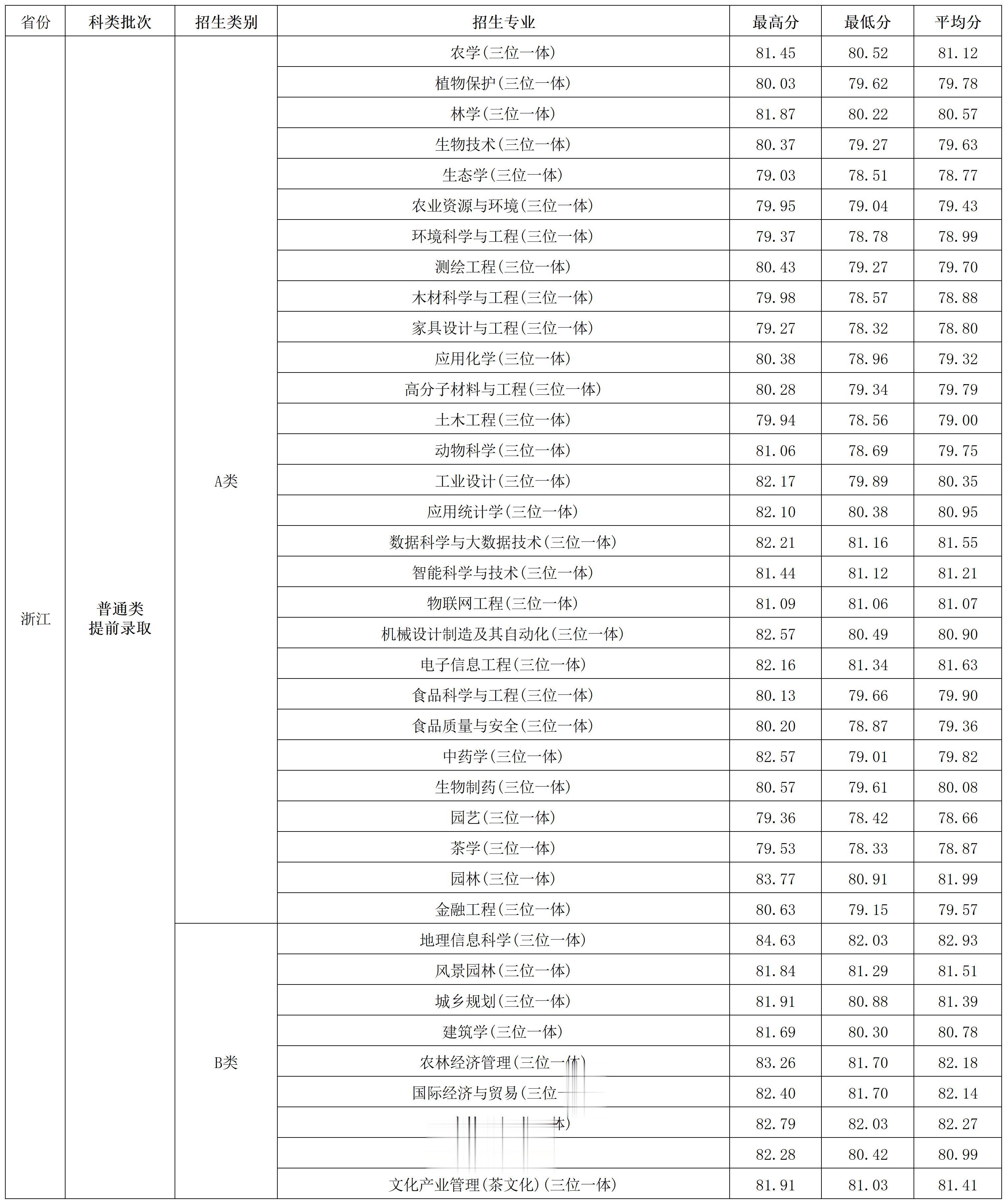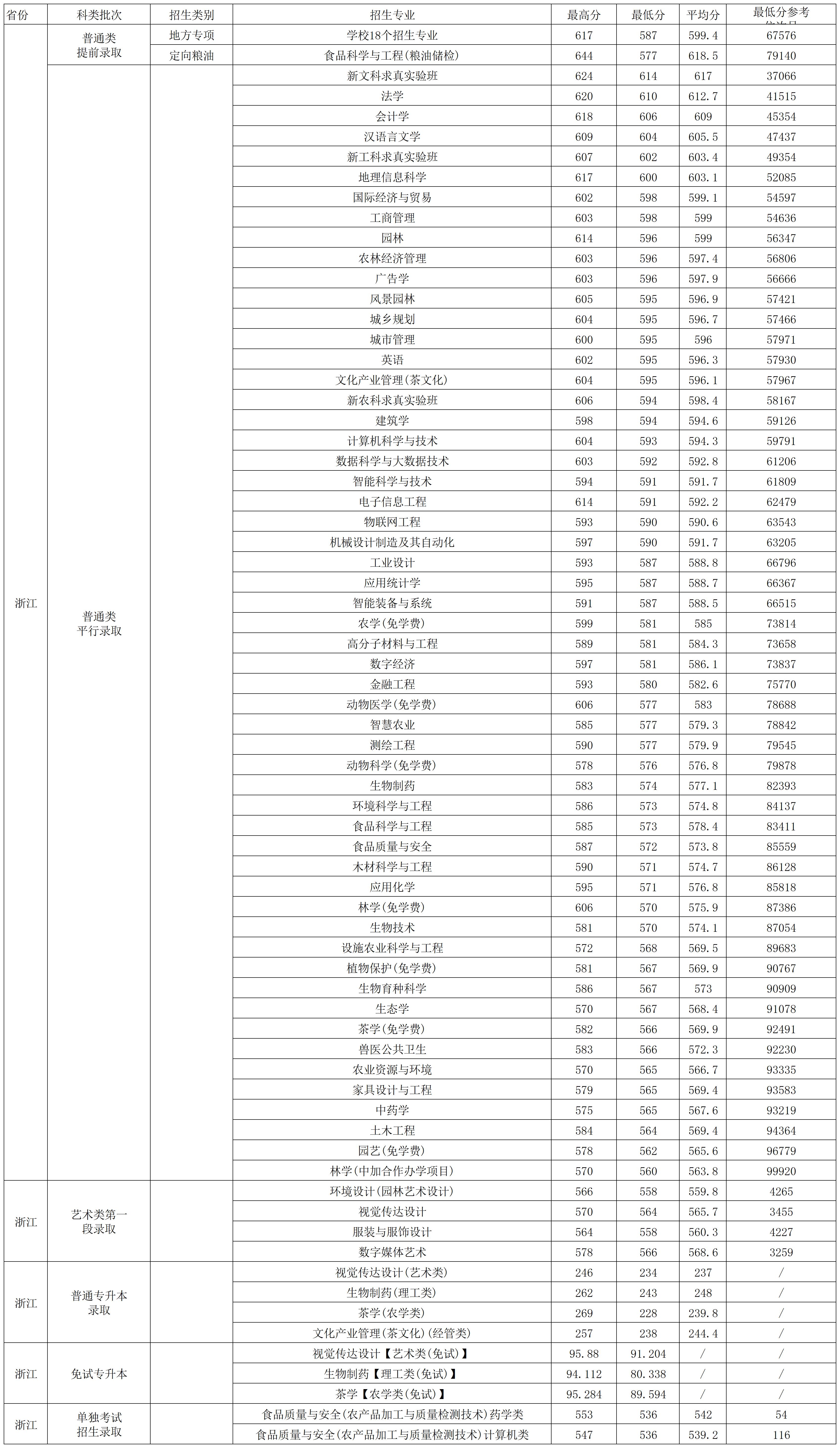浙江农林大学2025年录取分数线汇总,各省哪些专业分数线较高?
