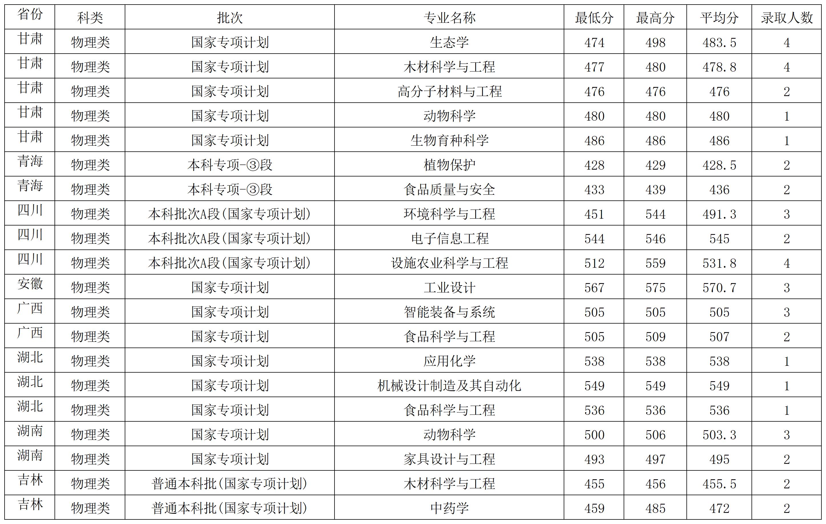 浙江农林大学2025年国家专项在各省各专业录取分数线