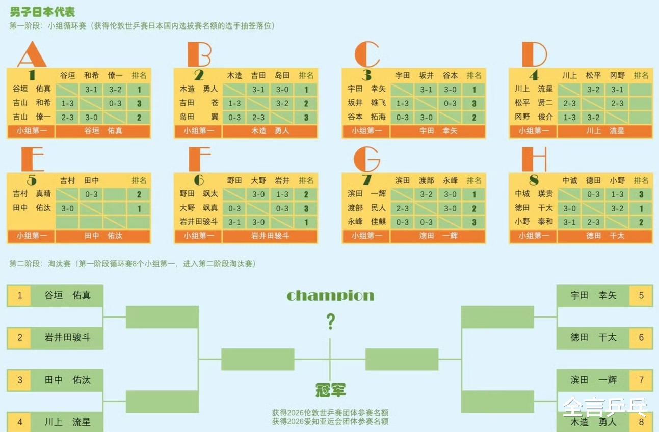 至于另一位世界冠军吉村真晴在小组赛败给了田中佑汰,同样无缘晋级,目前两项单打8强的名单已经全部出炉,有人欢喜有人愁,详细战况如下: