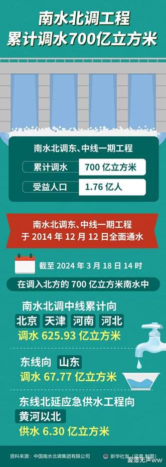 新华社北京3月18日电(记者刘诗平)记者18日从中国南水北调集团有限公司了解到,南水北调东、中线一期工程累计调水700亿立方米,受益人口1.76亿人。