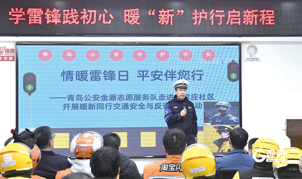 青岛公安金盾志愿服务队走进市南区珠海路街道辛家庄社区,以“情暖雷锋日 平安伴您行”为主题,面向新就业群体开展交通安全和反电信诈骗宣传活动。市南公安交管大队民警、市南公安刑侦大队反诈中心民警结合外卖员、快递员的职业特点,深入剖析交通安全知识和常见诈骗手段,引导大家把安全准则融入日常工作生活。