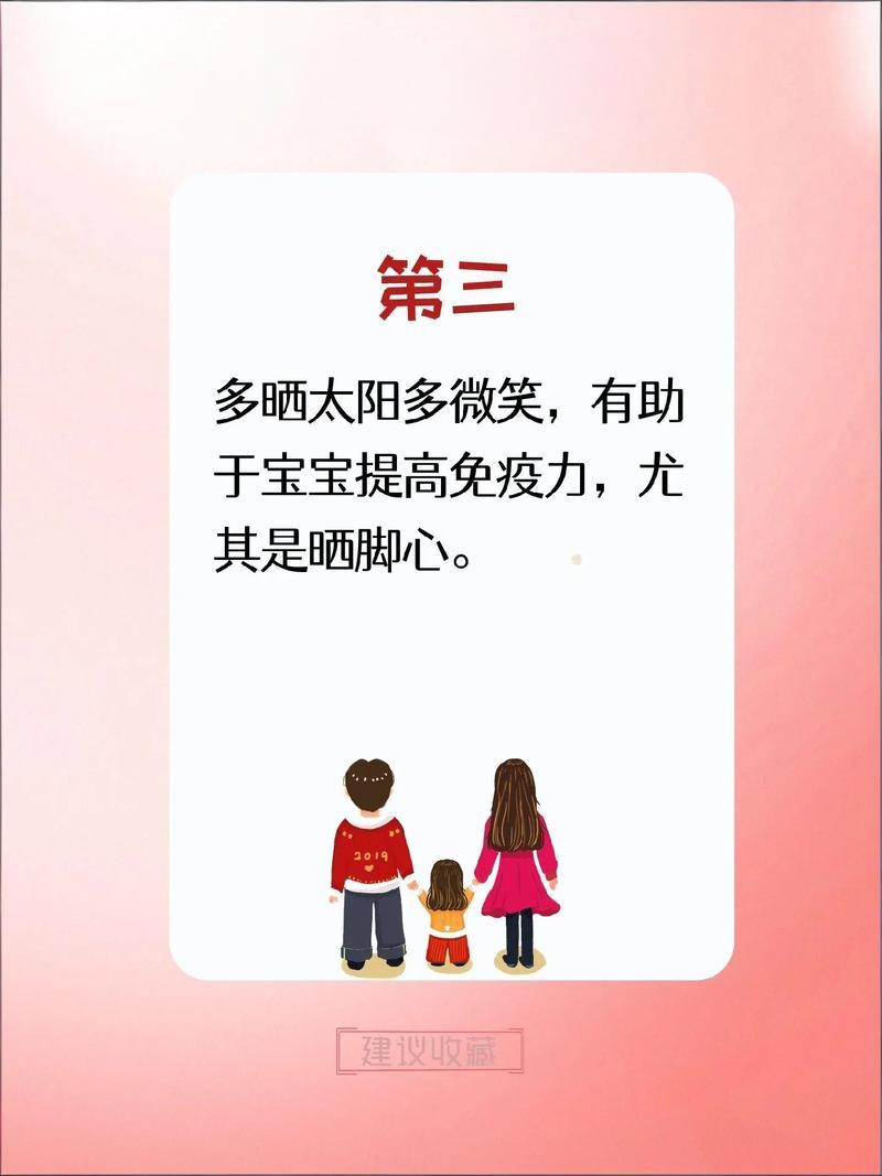 孩子抵抗力弱,日常护理是重中之重。做好腹部、脚部保暖,避免着凉拉肚子;勤换衣物、勤洗屁屁,预防红屁屁、湿疹;每天保证适量饮水量,促进新陈代谢。