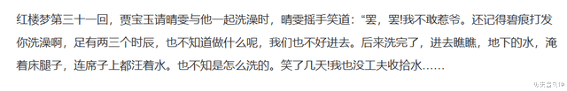 可他忘了晴雯这个烈性子,晴雯不上他甜言蜜语的当,反而冷嘲热讽:“罢,罢!我不敢惹爷。还记得碧痕打发你洗澡啊,足有两三个时辰,也不知道做什么呢,我们也不好进去。后来洗完了,进去瞧瞧,地下的水,淹着床腿子,连席子上都汪着水。也不知是怎么洗的。笑了几天!我也没工夫收拾水……