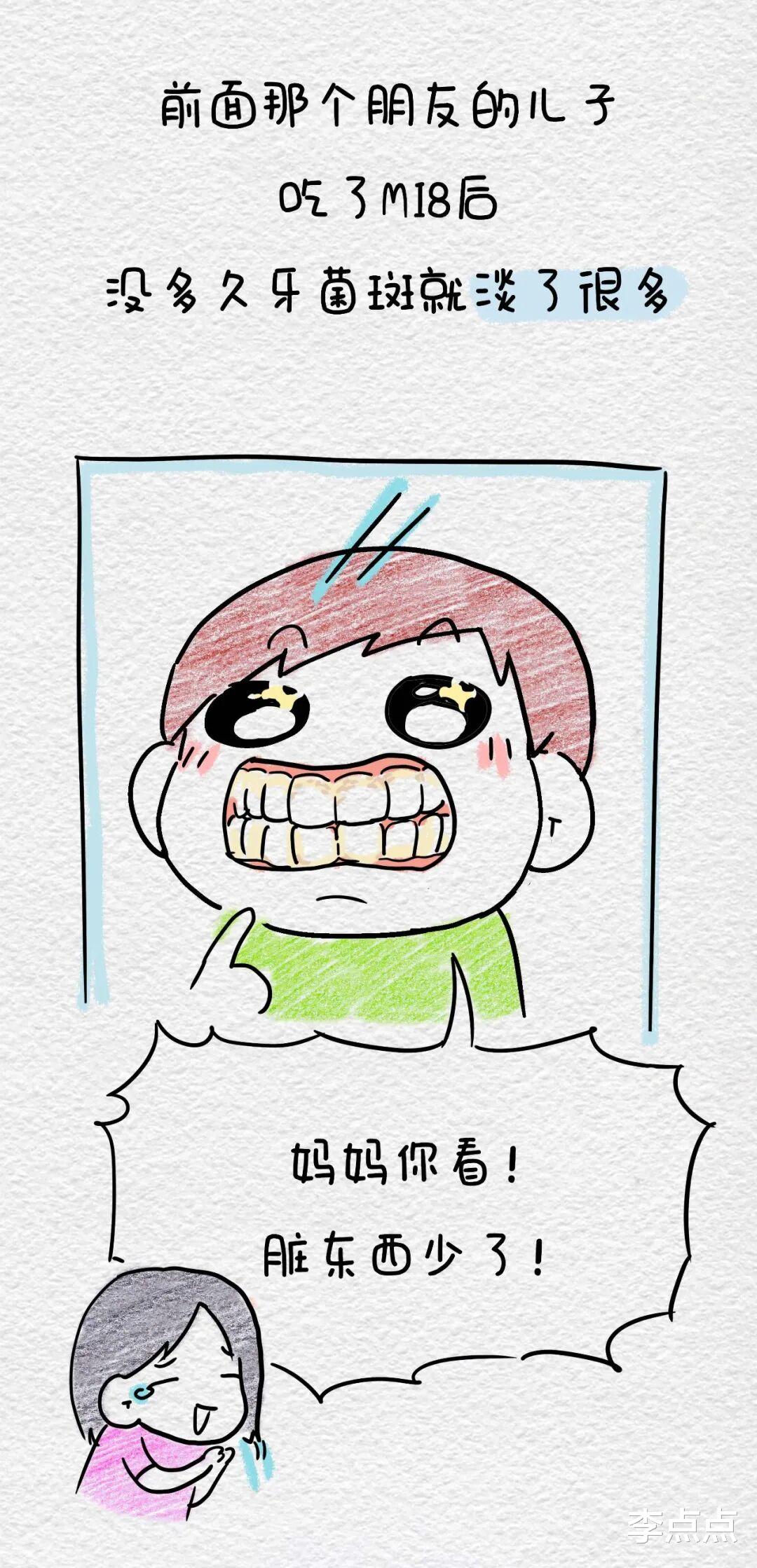 土豆好朋友的弟弟,之前满口的黑牙菌斑,在坚持食用M18后,现在已经非常干净漂亮了,土豆爸还专门让他龇牙给我们看了一下。