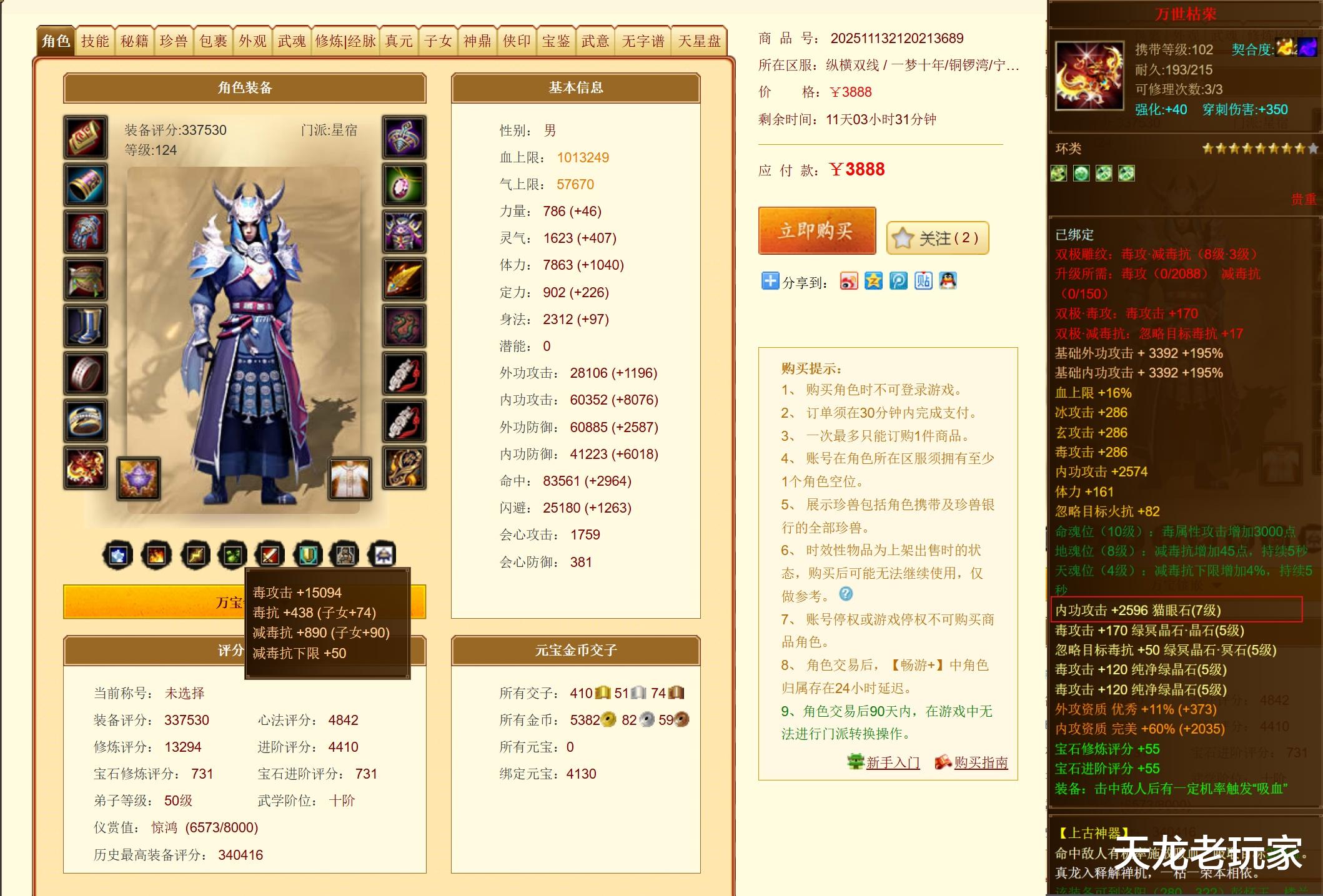 33万评分的124级星宿,唯一一颗7级宝石也是一颗猫眼,同样镶嵌在了神器的第一颗宝石位上。